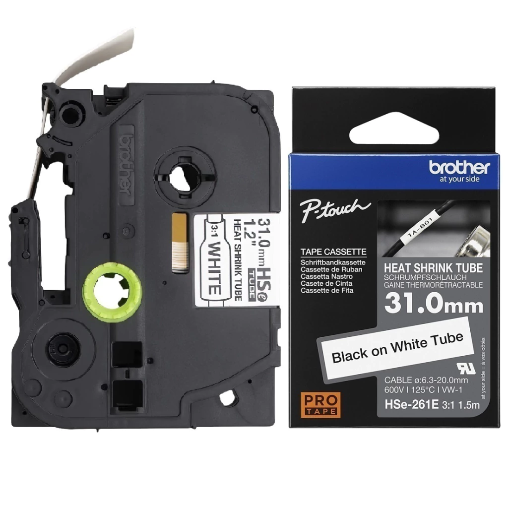Cinta Brother HSE261E Termocontraíble Negro/Blanco 31mm | ø 6.3 - 20.0mm | 125 °C